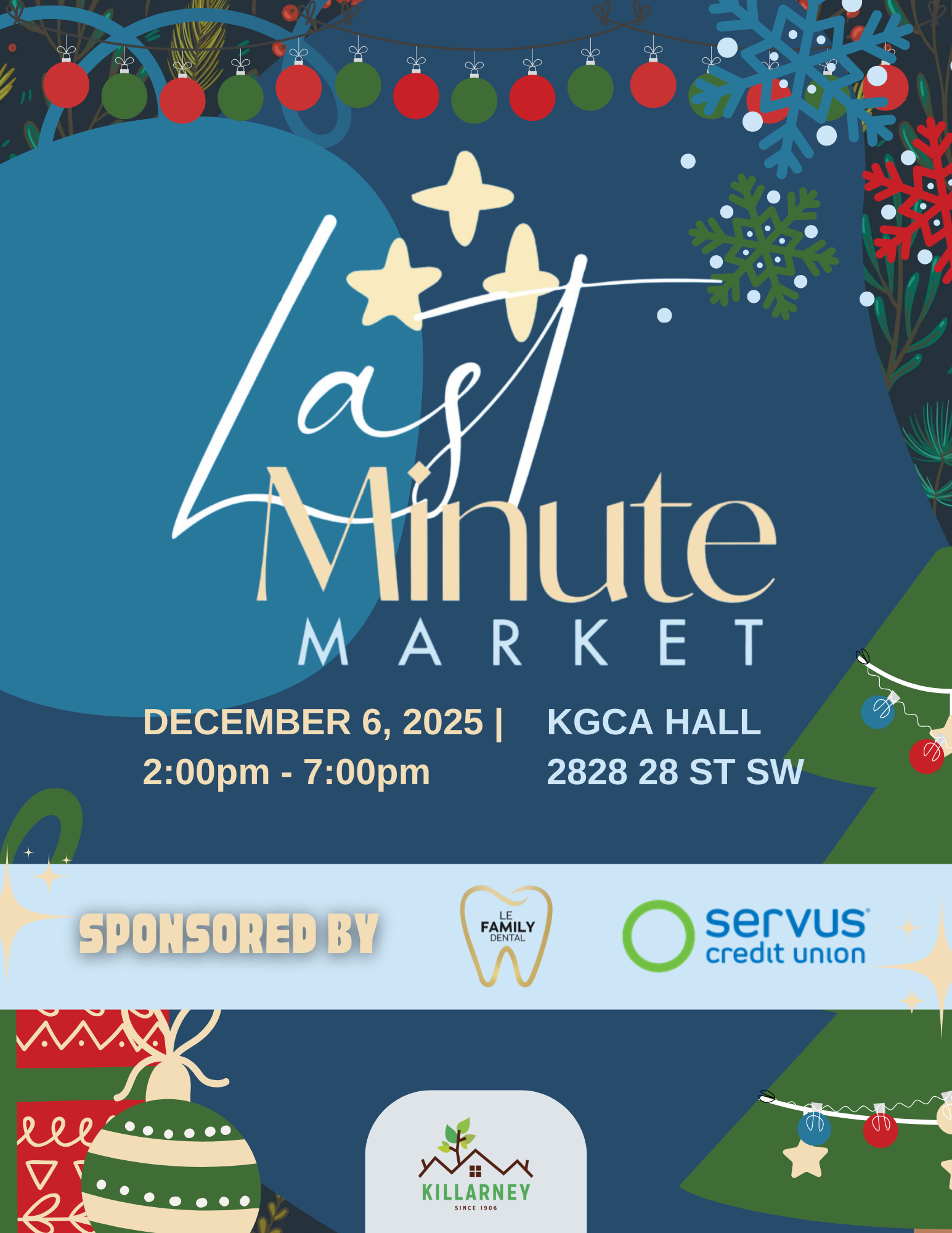 Mark your calendars for our Fifth Annual Last Minute Market on December 6 from 2PM - 7PM! Sponsored by Le Dental and Servus Credit Union.
